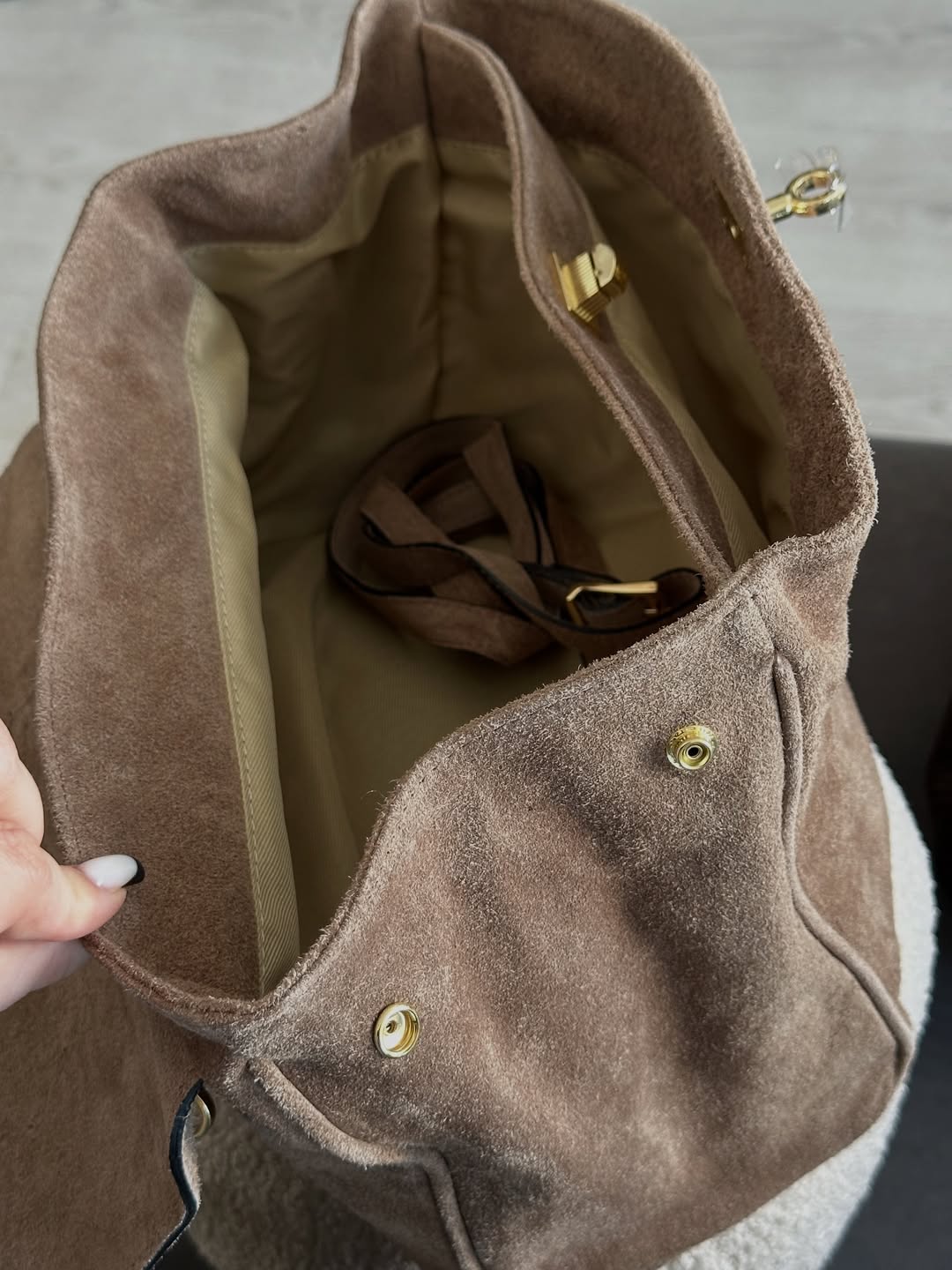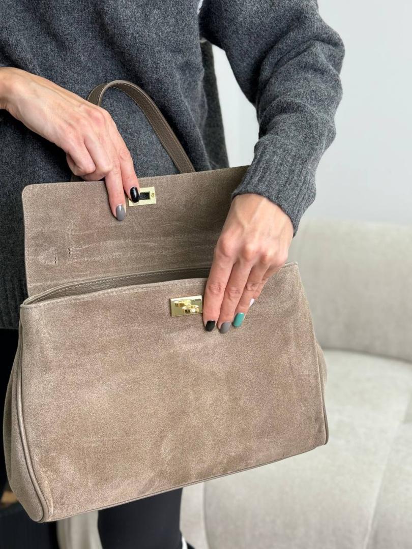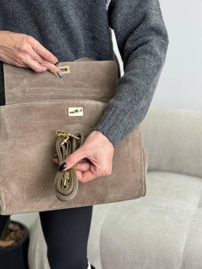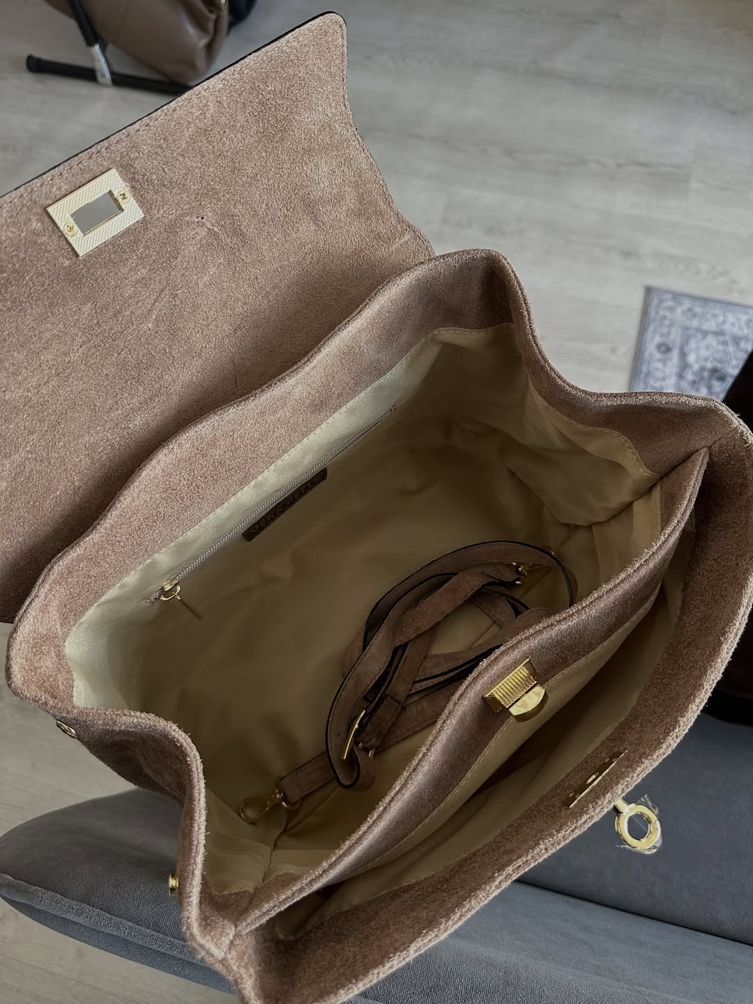 Céleste exudes soft luxury, crafted from suede in a deep burgundy tone that gives it warmth and refined character. The classic flap design, complemented by a gold-tone metal clasp, creates a timeless look with a subtle vintage touch. Its gently structured silhouette maintains its shape, while the soft texture adds femininity and sophistication.
