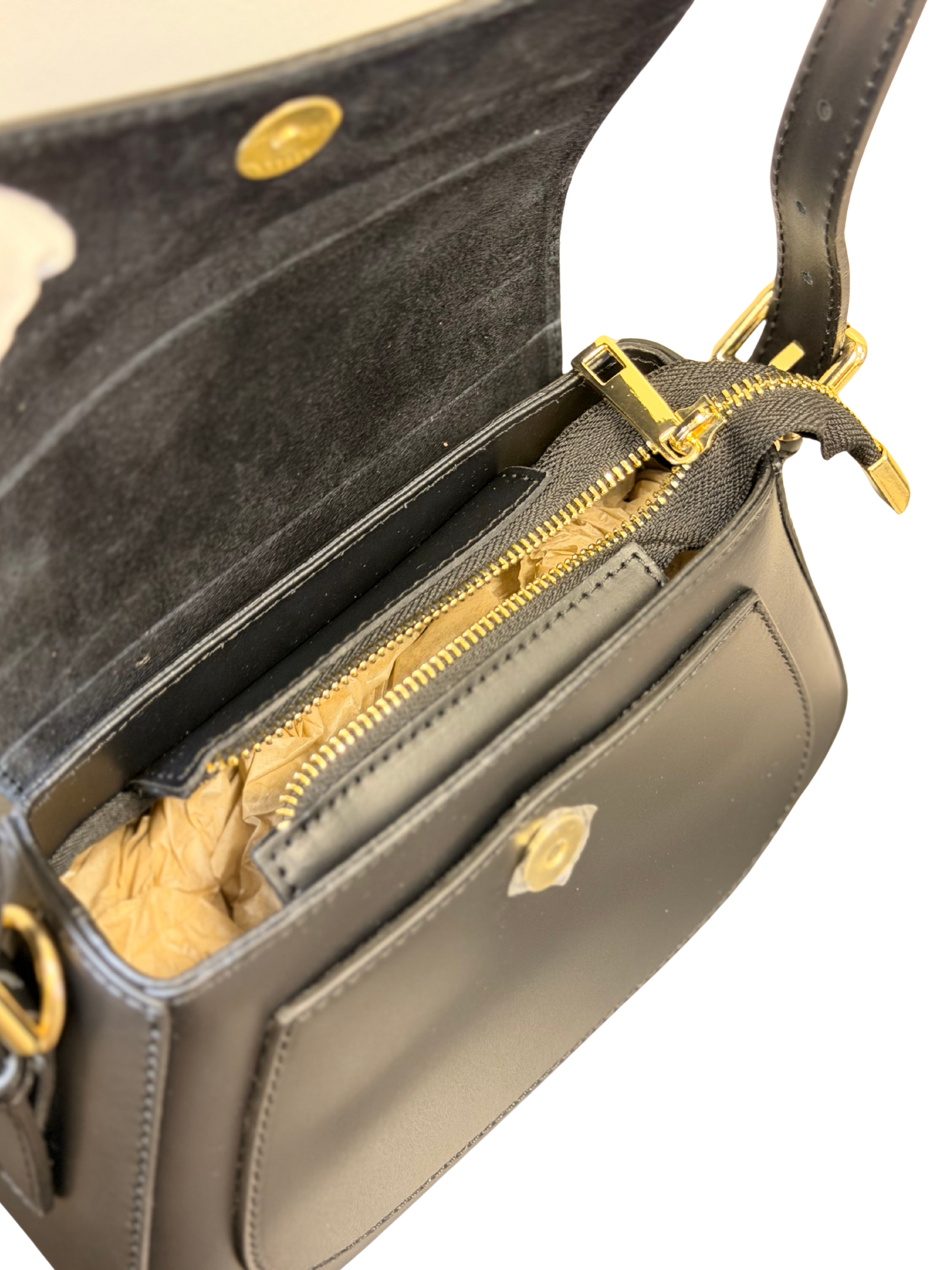 - Gold-tone hardware