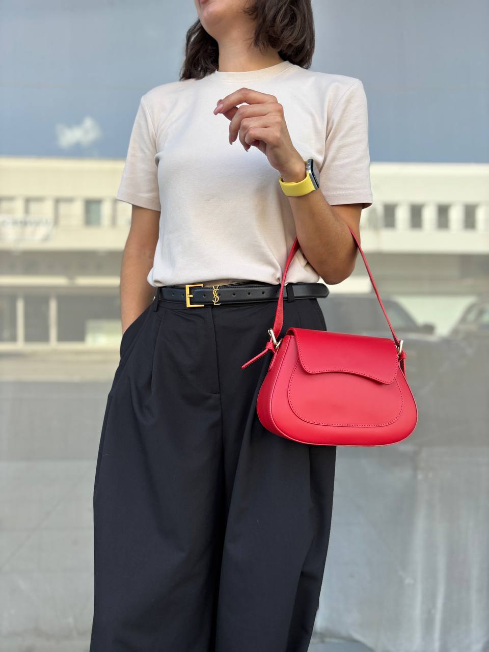 Compact yet refined, this mini handbag is crafted from premium dollar-textured leather, offering both structure and softness. Its elegant silhouette and functional design make it perfect for daily wear or evening outings.